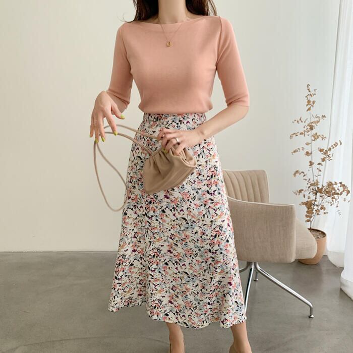 韓国風ミッドスリーブサマーニットセーターです。