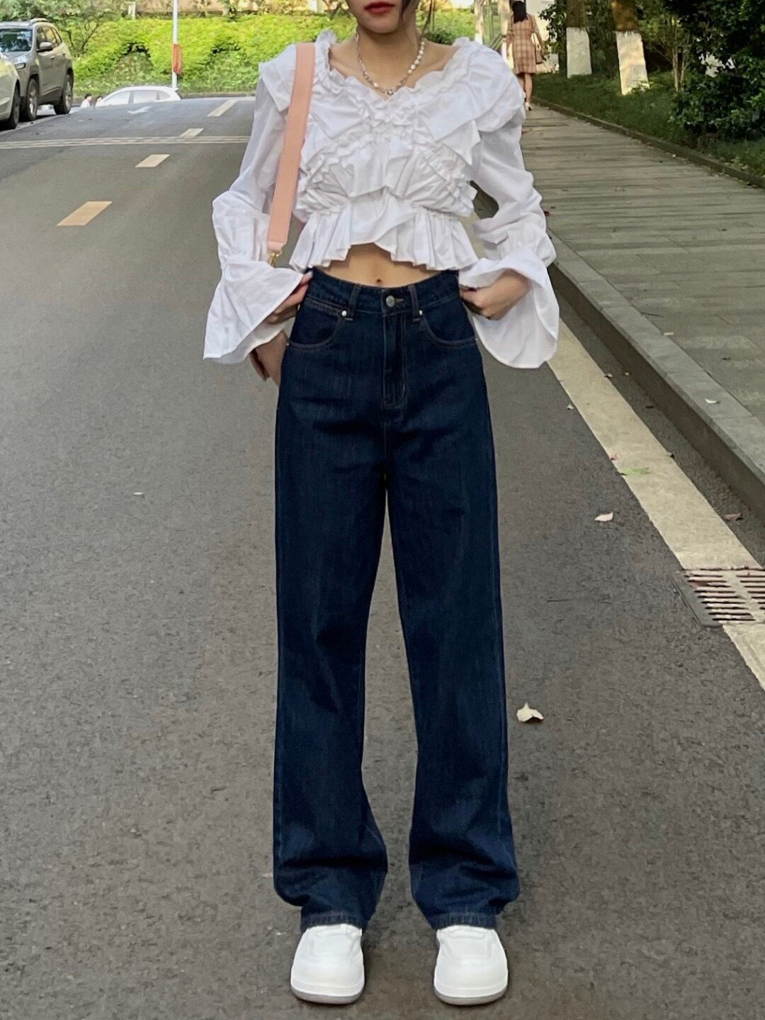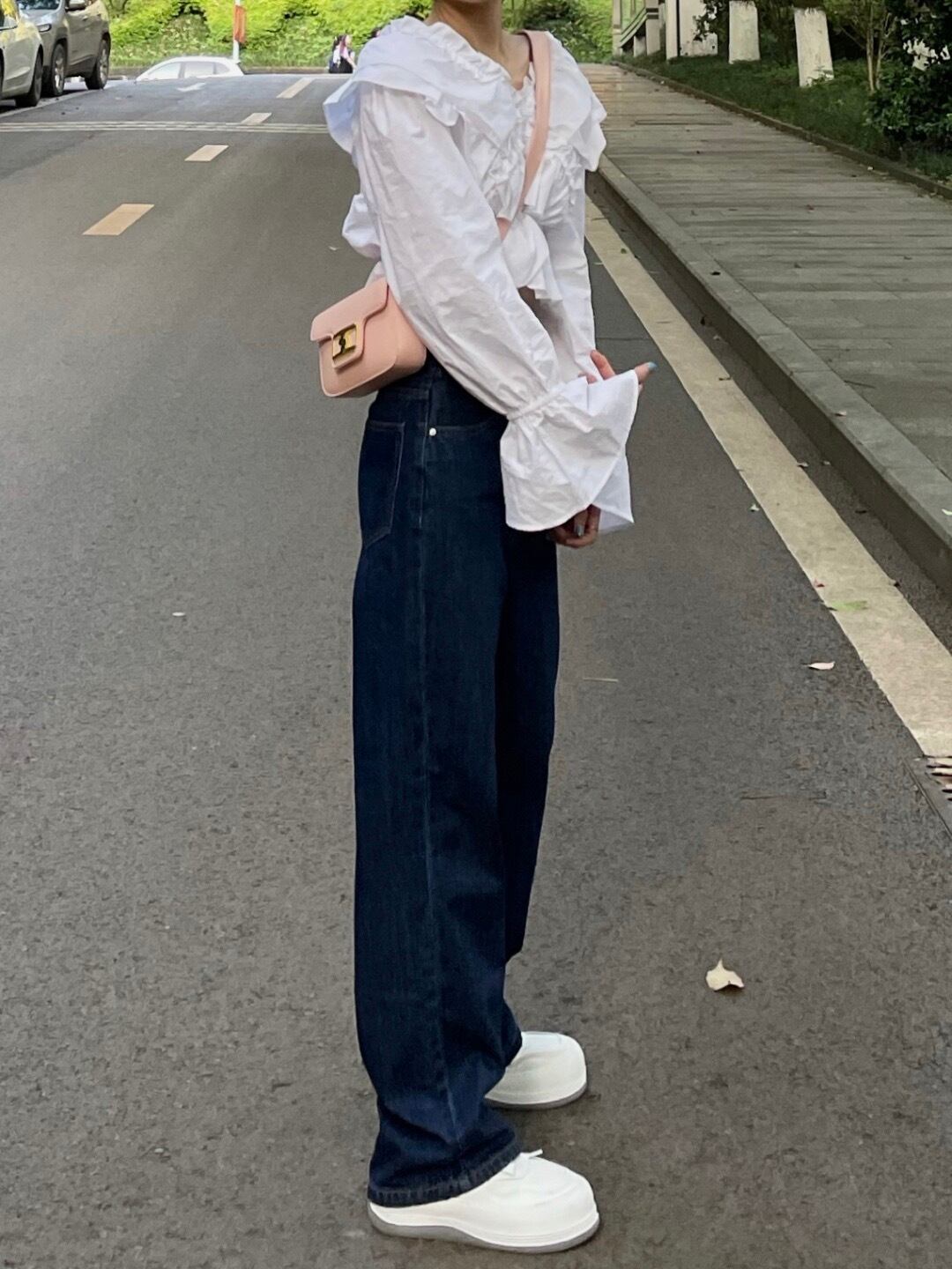 やや太めのストレートのシルエットがメンズライクなカッコ良さ漂うデニムです。