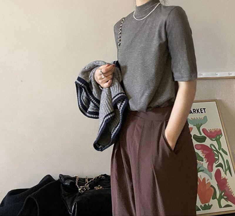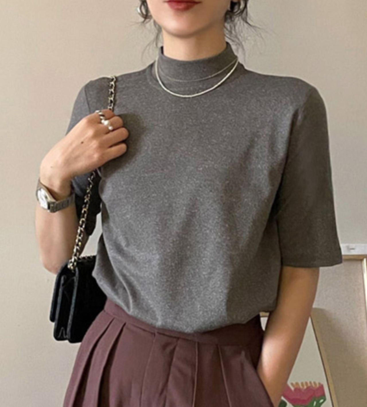 起毛 ハイネック シンプル トップス Tシャツ シャツ プルオーバー 白シャツ 白トップス 袖あり 半袖 襟なし ストレート スマート かわいい 大人可愛い きれいめ 大人 上品 おしゃれ お洒落 大人女子 クール モダン 抜け感 無地 夏 10代 20代 30代 40代 50代 60代 レディース 女性用 オフィス OL 通勤 学生 通学 デート お出かけ 女子会 お泊まり 休日 着回し 普段使い 重ね着 フリーサイズ ワンサイズ 白 ホワイト 黒 ブラック 灰色 グレー