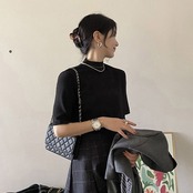 コーデ次第でカジュアルからフォーマルまで使えるハイネックのシンプルTシャツです。