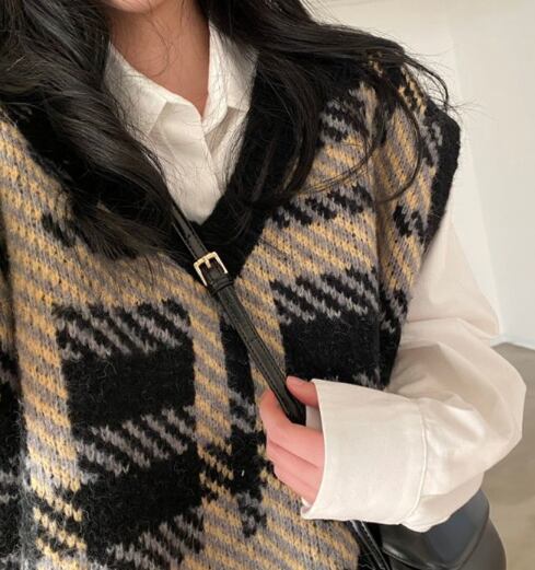 トップス ニットベスト トップス ベスト 袖なし Vネック スマート リブニット かわいい 大人可愛い カジュアル 大人 上品 おしゃれ お洒落 レトロ 大人可愛い 大人女子 こなれ感 キュート ガーリー 存在感 柄 チェック柄 秋 冬 クリスマス バレンタイン 10代 20代 レディース 女性用 ママ 学生 通学 デート お出かけ 女子会 休日 着回し 重ね着 お揃い 韓国 オルチャン ファッション コーデ スタイル モテ 定番 プチプラ インスタ映え サイズ S M L XL 色展開 黒 ベージュ