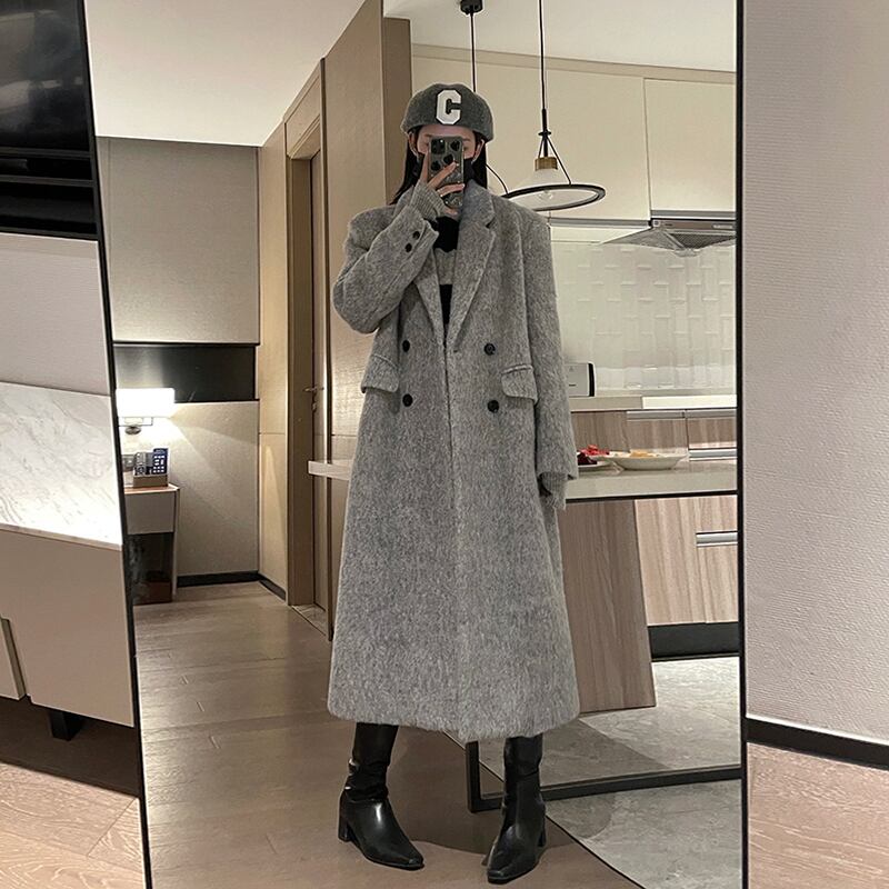 エレガントな印象のダブルブレストのチェスターコートに、毛足の長いシャギーな素材感が、より華やかさをもたらす素敵な一着となっています。