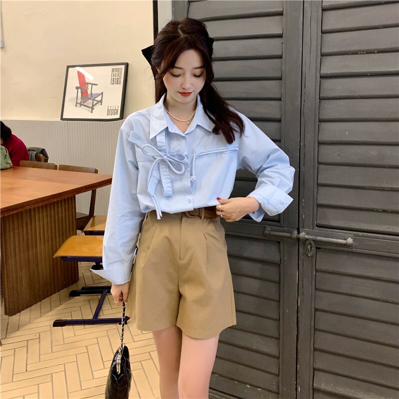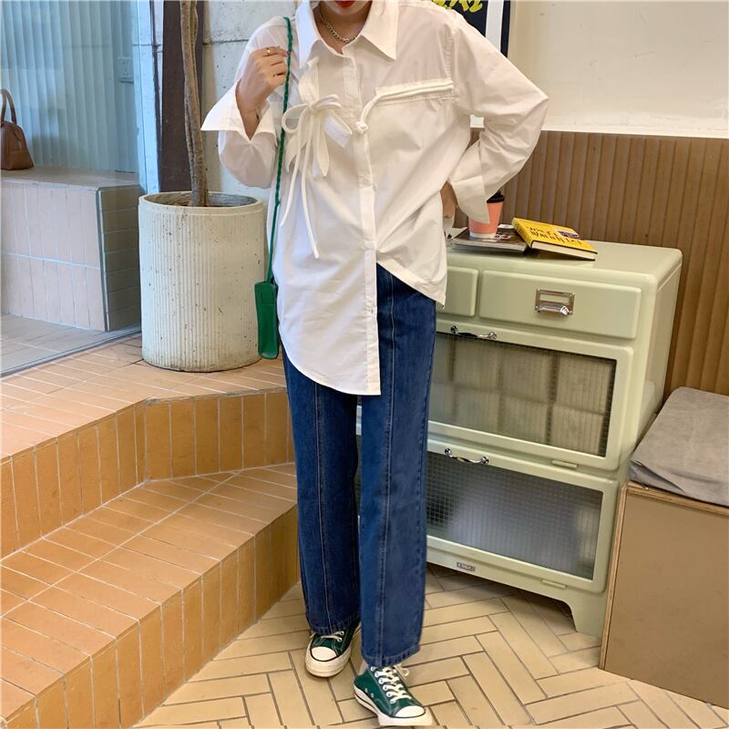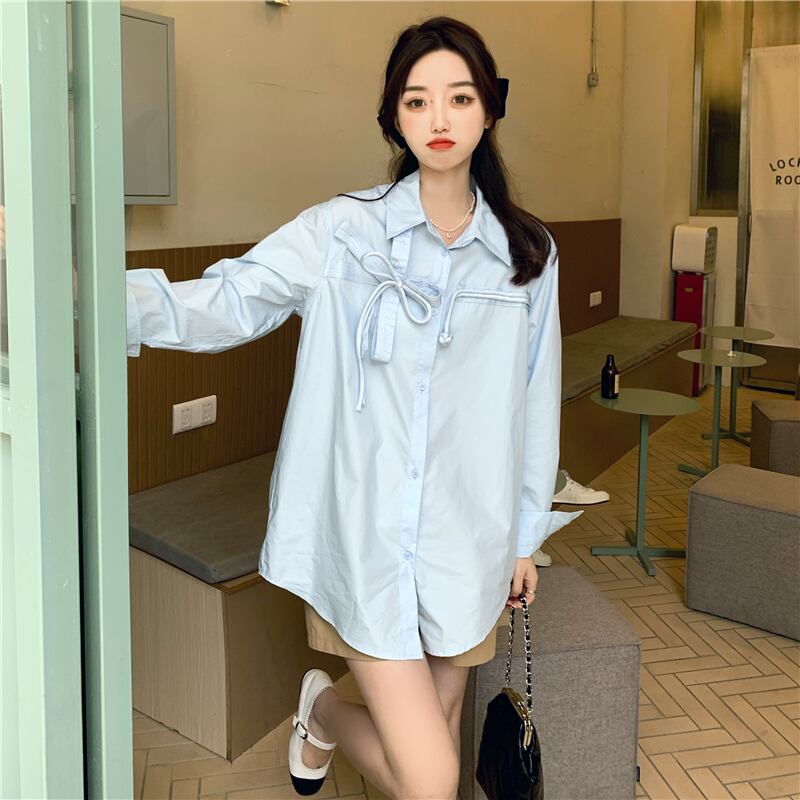 ラペルカラー シャツワンピ シャツワンピース ゆったり シンプル フレンチ トップス Tシャツ シャツ ブラウス 白シャツ 白トップス 袖あり 長袖 襟付き ストレート スマート リボン 前開き ボタン かわいい カジュアル 大人 おしゃれ お洒落 かっこいい こなれ感 ラフ スポーティー ルーズ 個性的 クール 抜け感 無地 春 秋 10代 20代 30代 レディース 女性用 OL 学生 お出かけ 女子会 休日 普段使い 体系カバー フリーサイズ ワンサイズ 白 ホワイト 青 水色 ライトブルー
