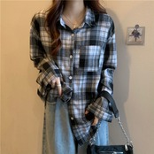 配色がとても綺麗なチェックのオーバーサイズブラウスです。