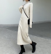 ハイネック ニット シンプル ワンピース デート 膝下 ミモレ ミモレ丈 袖あり 長袖 襟なし スリム ストレート Iライン スマート スリムフィット 伸縮性 かわいい 大人可愛い きれいめ カジュアル 大人 おしゃれ お洒落 レトロ 大人女子 こなれ感 ラフ ラブリー キュート ガーリー ルーズ 抜け感 無地 春 秋 10代 20代 30代 40代 レディース 女性用 マタニティ OL 学生 お出かけ 女子会 休日 普段使い フリーサイズ ワンサイズ 白 ホワイト 黒 ブラック アプリコット