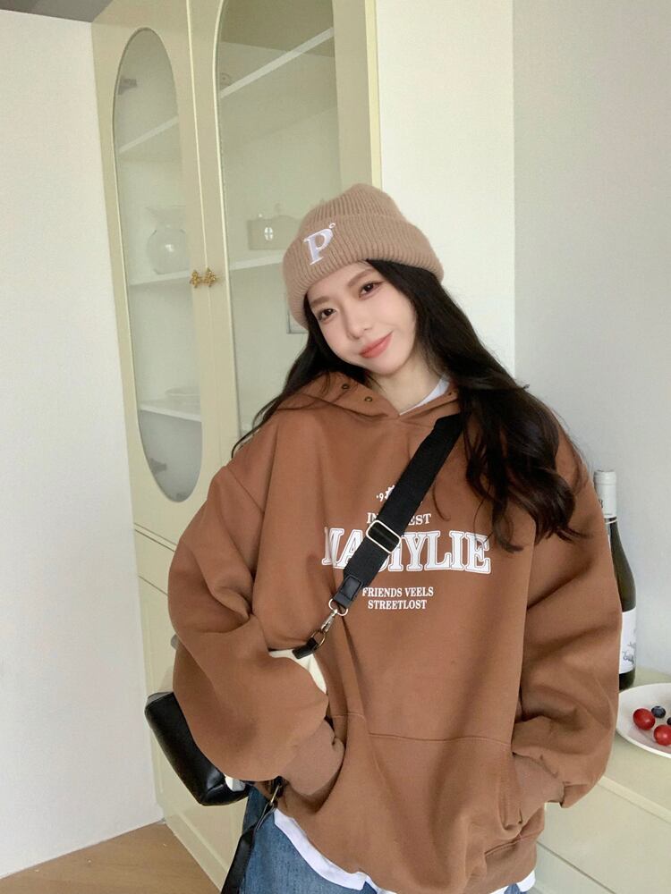 カレッジ風のロゴがオシャレなスウェットパーカーです。