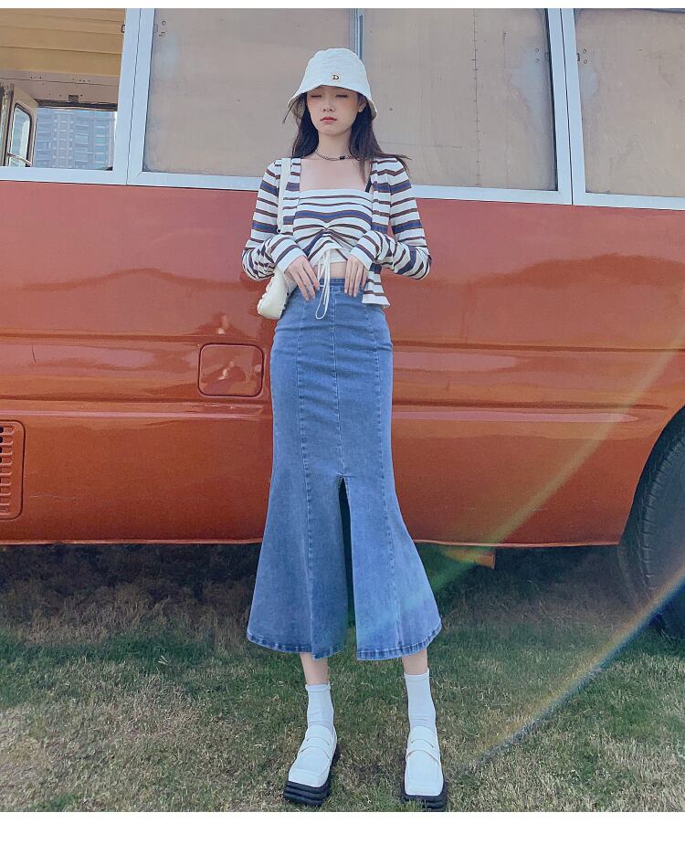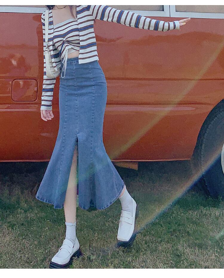 ハイウエスト フィッシュテイル マーメイド フェミニン エレガント シンプル スカート ロングスカート デニムスカート ミモレ ミモレ丈 フレア セミフレア デニム かわいい 大人可愛い きれいめ カジュアル おしゃれ お洒落 かっこいい レトロ 大人女子 こなれ感 ラフ キュート ルーズ クール 抜け感 無地 春 夏 秋 10代 20代 30代 40代 レディース 女性用 OL 学生 お出かけ 女子会 休日 普段使い 体系カバー 脚長 XS S M L XL 黒 ブラック 青 ブルー