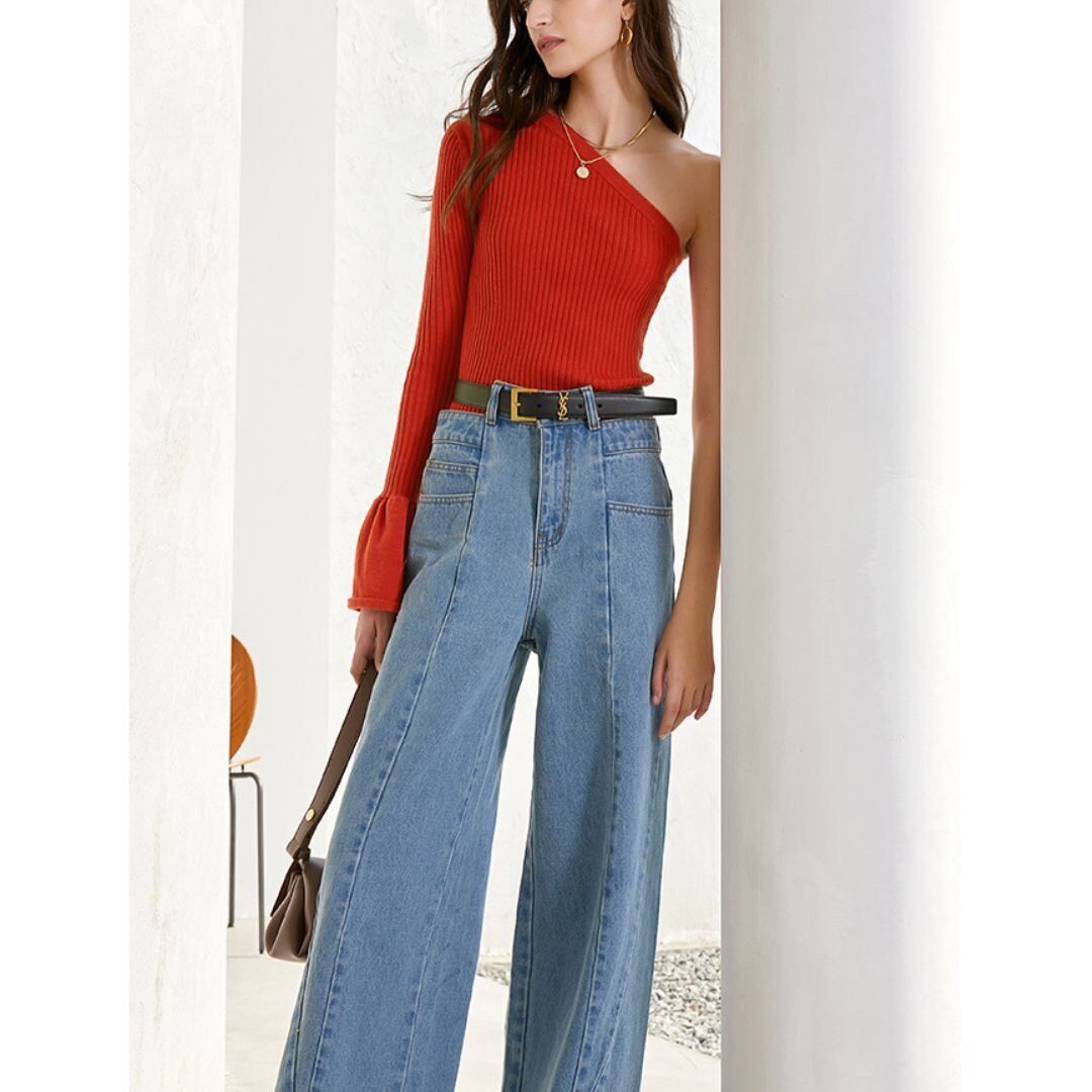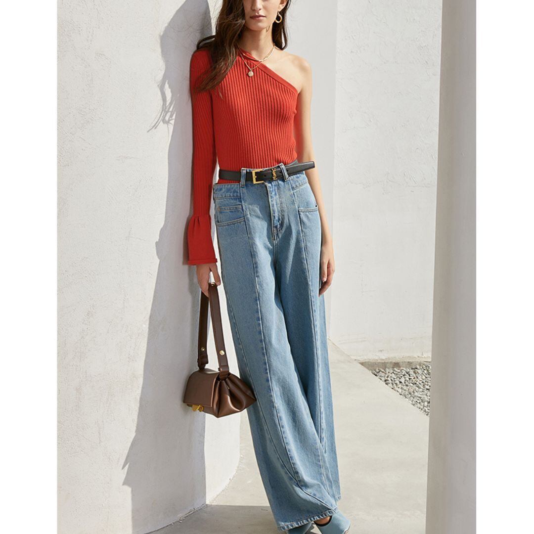 トップス カットソー ニットソー 袖あり 長袖 ホルンスリーブ ワンショルダー ワンショル スリム タイト 細身 アシンメトリー シンプル カジュアル 大人 おしゃれ お洒落 かっこいい 大人可愛い 大人女子 こなれ感 個性的 クール セクシー 主役級 存在感 無地 10代 20代 30代 レディース 女性用 ママ 女の子 学生 通学 デート お出かけ 公園デビュー 女子会 イベント 旅行 着回し お揃い 双子 韓国 オルチャン ファッション コーデ S M 黒 ブラック 赤 レッド 青 ブルー