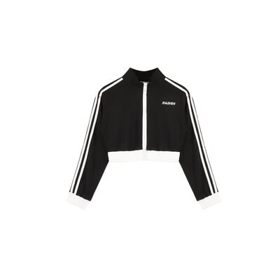 スポーティーなラインデザインのトップスと、同デザインのミニスカートです。