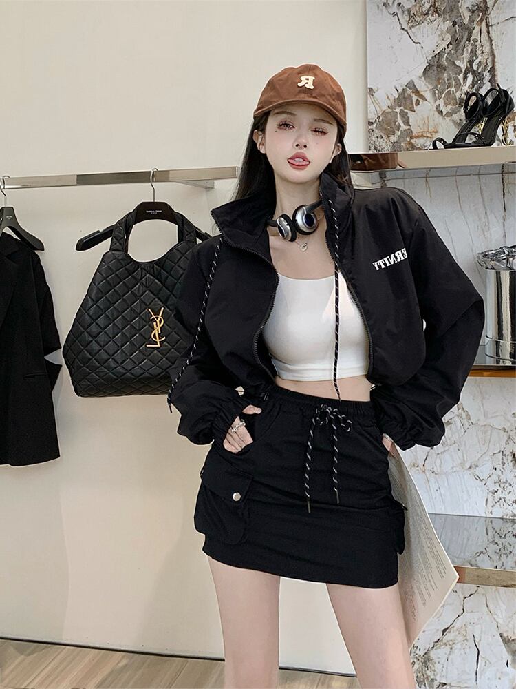 ストリート感溢れるクールなデザインのブルゾンとミニスカートです。