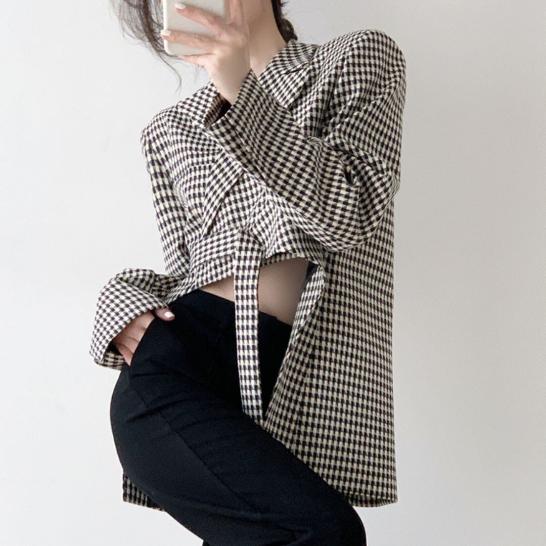 アウター コート ジャケット ミニ丈 ショート丈 袖あり 長袖 萌袖 アシンメトリー 切り替えデザイン かわいい 大人可愛い きれいめ カジュアル おしゃれ お洒落 かっこいい 大人女子 こなれ感 ラフ 個性的 クール 主役級 チェック柄 格子柄 千鳥格子 秋 冬 10代 20代 30代 40代 50代 60代 レディース 女性用 ママ 女の子 学生 通学 デート お出かけ 公園デビュー 女子会 イベント リゾート 着回し 普段使い 韓国 オルチャン ファッション コーデ サイズ S M L 大人カラー