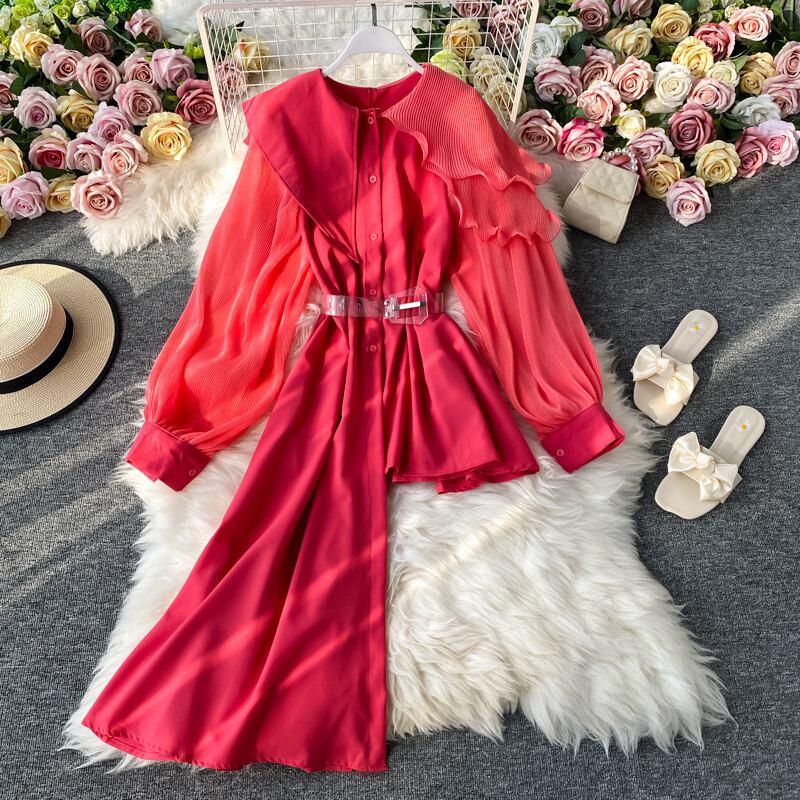 トップス シャツ ブラウス チュニック ミモレ丈 ロング丈 袖あり 長袖 ボリューム袖 襟付き アシンメトリー 変形デザイン フリル きれいめ カジュアル 大人 おしゃれ お洒落 かっこいい レトロ 大人女子 こなれ感 個性的 クール 無地 10代 20代 30代 40代 50代 60代 レディース 女性用 ママ 学生 通学 デート お出かけ 女子会 パーティー イベント 旅行 韓国 オルチャン ファッション コーデ フリーサイズ 色展開 白 ホワイト 黒 ブラック 緑 グリーン 黄色 イエロー レッド