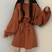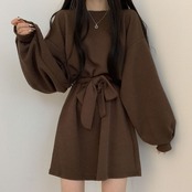 ワンピース チュニック ミニ丈 ショート丈 膝丈 ひざ丈 袖あり 長袖 ボリューム袖 ラウンドネック クルーネック 襟なし ベルト ウエストマーク ウエストリボン ハイウエスト かわいい 大人可愛い きれいめ シンプル カジュアル 大人 おしゃれ かっこいい こなれ感 ラフ クール モード系 無地 秋 冬 誕生日 謝恩会 二次会 10代 20代 30代 レディース デート お出かけ 旅行 着回し 普段使い スタイル モテ 美脚 脚長 M L XL 2XL 3XL ブラック ブラウン グレー オレンジ