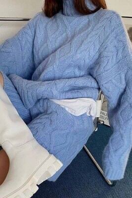ざっくりとした質感と、ケーブル編みの立体感が素敵なタートルネックとショートパンツのツービースニットです。