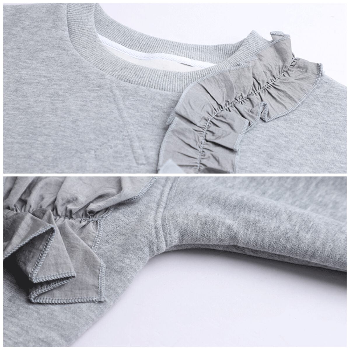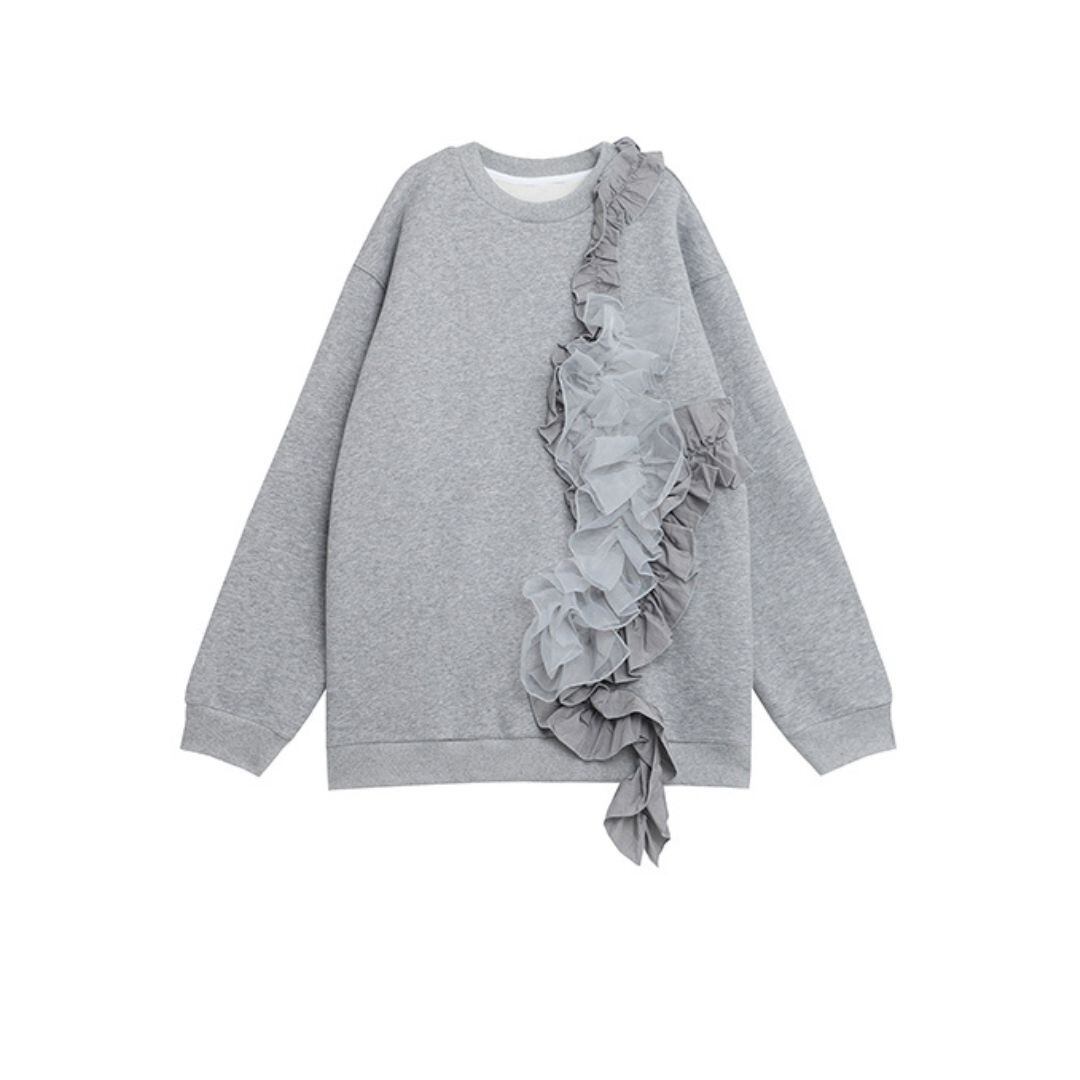 トップス カットソー プルオーバー 袖あり 長袖 ラウンドネック フリル かわいい 大人可愛い シンプル カジュアル 大人 おしゃれ お洒落 大人女子 こなれ感 ラフ 無地 ワンポイント 秋 冬 10代 20代 30代 40代 50代 60代 レディース 女性用 ママ 女の子 学生 通学 デート お出かけ 公園デビュー 女子会 アウトドア イベント 旅行 着回し 普段使い 韓国系 オルチャン 暖かい ゆったり ゆるシルエット オーバーサイズ 大きめ ビッグサイズ サイズ S M L 灰色 グレー