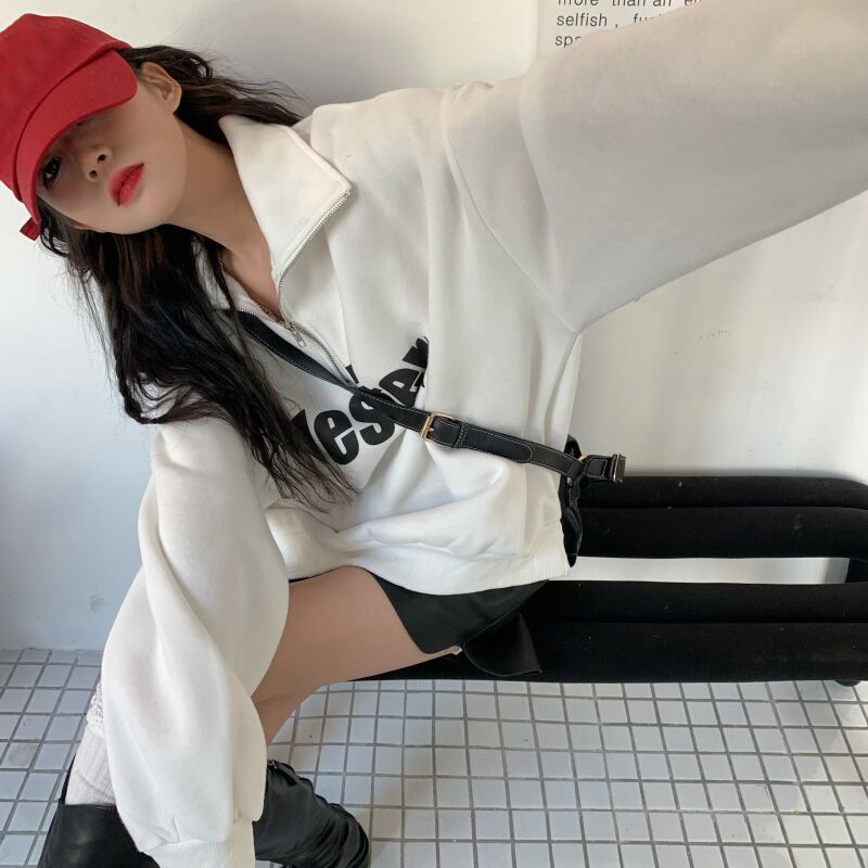 ハーフジッパー タートルネック シンプル トップス プルオーバー トレーナー ミドル丈 袖あり 長袖 ボリューム袖 襟付き ジッパー ファスナー ふんわり ゆったり かわいい シンプル カジュアル おしゃれ お洒落 レトロ こなれ感 ラフ メンズライク マニッシュ ボーイッシュ スポーティー ラブリー キュート ガーリー ルーズ 抜け感 無地 文字 秋 冬 10代 20代 30代 レディース 女性用 OL 学生 休日 運動 体系カバー 若見え フリーサイズ ワンサイズ 白 ホワイト 黒 ブラック