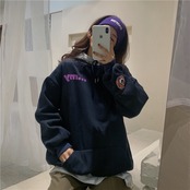 トップス アウター パーカー トレーナー ミディアム丈 袖あり 長袖 ラウンドネック ワイド もこもこ フード付き 厚手 かわいい シンプル カジュアル おしゃれ お洒落 かっこいい レトロ こなれ感 ラフ メンズライク ボーイッシュ スポーティー ラブリー キュート ルーズ プリント M L XL 灰色 グレー 黄色 イエロー ネイビー カラバリ ファッション プラスサイズ デイリー使い 普段使い 通勤 通学 学生 3色 3カラー 女子 レディース 女性用 ゆったり 萌え袖 ゆる 犬 ワンちゃん 可愛