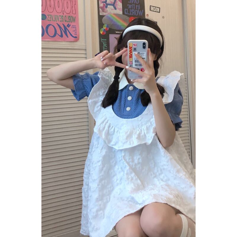 フェミニン ショート丈 トップス スカート ワンピース デート コスプレ ミニスカート ミニワンピ チェックワンピ ミニ ミニ丈 ショート ショート丈 袖あり 半袖 パフスリーブ 襟付き ラペルカラー Aライン フリル ボタン ふんわり ゆったり 2点セット かわいい レトロ ラブリー キュート ガーリー ルーズ 個性的 存在感 無地 花柄 10代 20代 30代 レディース 女性用 女の子 学生 休日 パーティー イベント 若見え アイドル S M L 白 ホワイト 青 ブルー 水色 ライトブルー