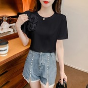 トップス Tシャツ 袖あり ノースリーブ ラウンドネック ストレート 花 コサージュ かわいい 大人可愛い きれいめ シンプル カジュアル 大人 上品 おしゃれ お洒落 かっこいい レトロ 大人可愛い 大人女子 こなれ感 個性的 エレガント フェミニン 無地 春 夏 20代 30代 レディース 女性用 ビジネス OL 通勤 デート お出かけ 女子会 お泊まり 休日 アウトドア イベント リゾート 旅行 海 プール 着回し 普段使い 重ね着 韓国 S M L XL プラスサイズ 黒 ブラック 白 ホワイト