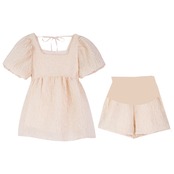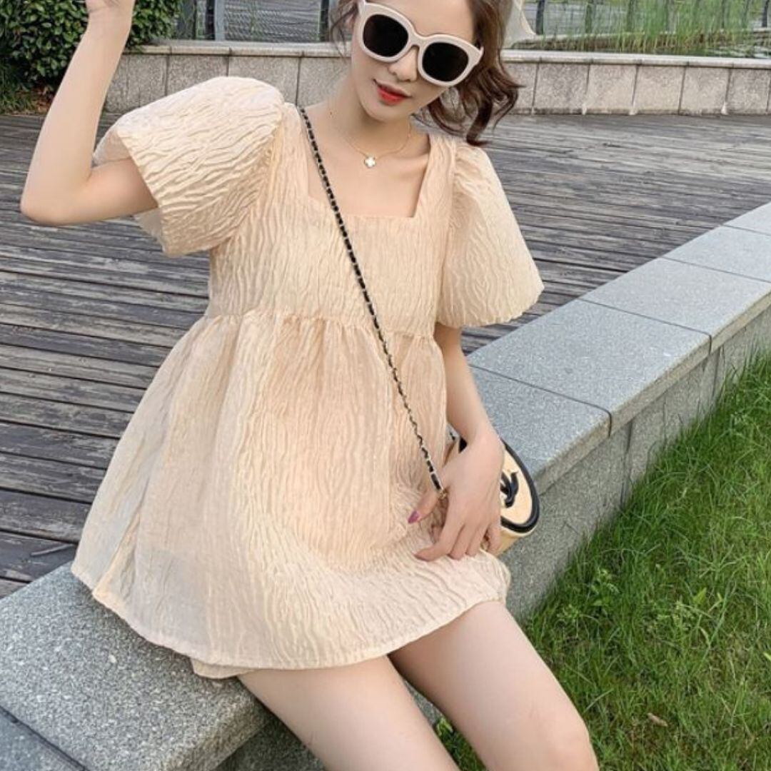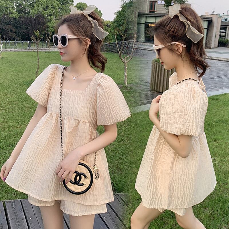 セットアップ トップス パンツ カットソー チュニック シャツ ショートパンツ ミニ丈 ショート丈 袖あり 半袖 パフスリーブ スクエアネック フレア 切り替えデザイン シフォン かわいい 大人可愛い きれいめ シンプル カジュアル 上品 おしゃれ お洒落 大人女子 マタニティー 無地 春 夏 10代 20代 30代 レディース 女性用 ママ デート お出かけ 女子会 リゾート 旅行 着回し 韓国 オルチャン ファッション コーデ サイズ M L XL 2XL 大きいサイズ オフホワイト ベージュ
