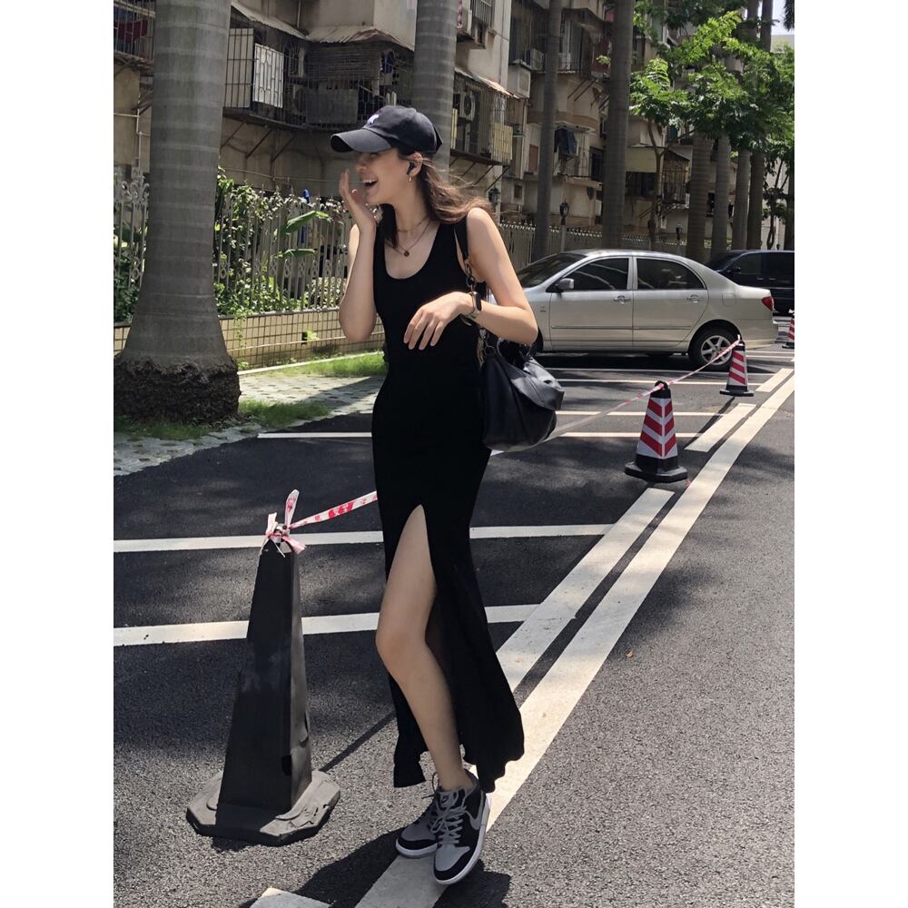 ワンピース ロング丈 袖なし ノースリーブ Uネック タイト アシンメトリー デザイン 美ライン サイドスリット 伸縮性 カラバリ かわいい 大人可愛い きれいめ シンプル カジュアル 大人 上品 おしゃれ お洒落 大人可愛い 大人女子 こなれ感 スポーティー ラブリー キュート ガーリー 個性的 エレガント モダン 主役級 存在感 抜け感 ベーシック ヨーロッパカジュアル ブリティッシュ スタンダード 洗練 無地 エイジレス レディース お出かけ 旅行 着回し 普段使い 重ね着 お揃い 双子
