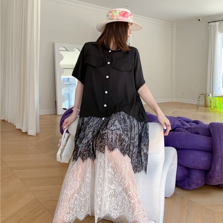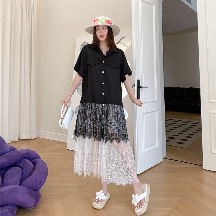 ワンピース シャツワンピース ロング丈 マキシ丈 半袖 襟付き レース ドッキング かわいい 大人可愛い きれいめ シンプル カジュアル 大人 上品 おしゃれ かっこいい 大人女子 こなれ感 キュート セクシー エレガント 主役級 存在感 フォーマル 無地 春 夏 誕生日 二次会 母の日 10代 20代 30代 40代 50代 60代 レディース ママ マタニティ 女の子 OL 学生 通学 デート お出かけ 公園デビュー 女子会 休日 リゾート 旅行 楽ちん モテ L XL 2XL ホワイト ブラック