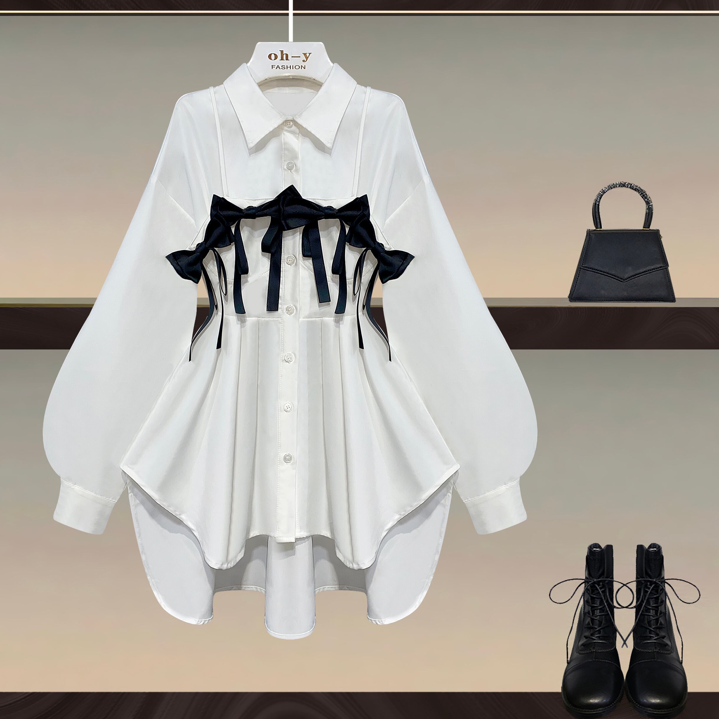 トップス シャツ ブラウス ミディアム丈 半端丈 長袖 ボリューム袖 襟付き フレア スリム ペプラム 切り替えデザイン テール リボン 前開き かわいい 大人可愛い きれいめ 大人 上品 おしゃれ お洒落 レトロ 大人女子 こなれ感 ラブリー キュート ガーリー 個性的 モード系 エレガント モダン 主役級 存在感 S M L 白 ホワイト 大人カラー モノトーン 無地 春 秋 レディース デート お出かけ パーティー イベント 韓国 韓国系 オルチャン ファッション スタイル モテ インスタ映え