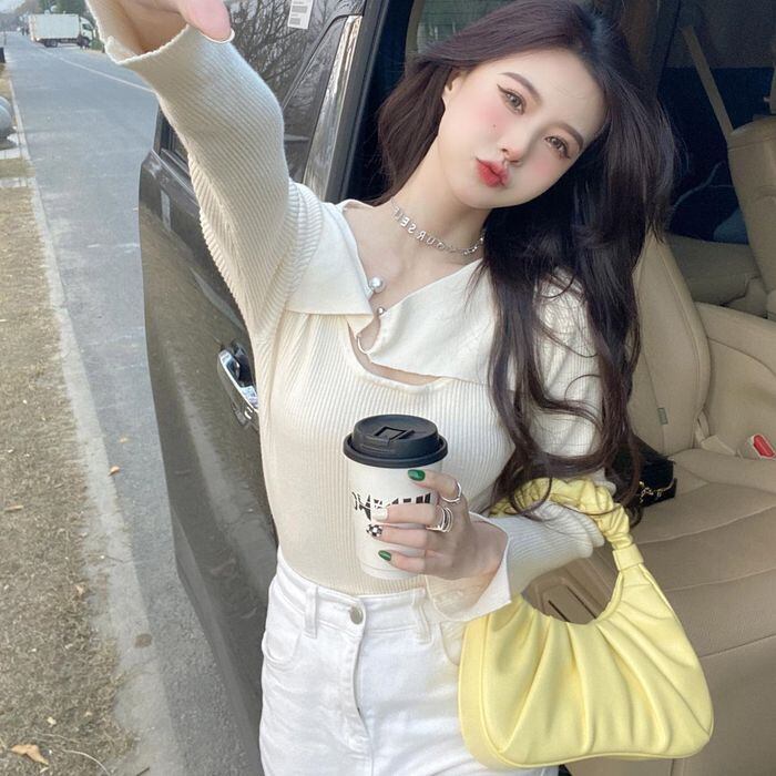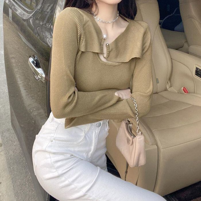 デザイン トップス ニットソー セーター 袖あり 長袖 襟付き プルオーバー パール リブニット タイト 細身 デザイン 美ライン 伸縮性 ストレッチ ニット カラバリ かわいい 大人可愛い きれいめ シンプル カジュアル 大人 上品 おしゃれ お洒落 大人可愛い 大人女子 こなれ感 スポーティー ラブリー キュート ガーリー 個性的 エレガント モダン 主役級 存在感 抜け感 ベーシック ヨーロッパカジュアル ブリティッシュ スタンダード 洗練 肌見せ 無地 エイジレス ホワイト ベージュ ブラック