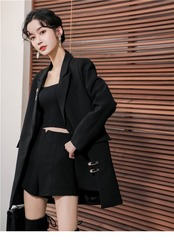ブラックのカラーとタイトなシルエットで着やせ効果も◎