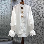 異国感溢れるデザインとレース調の袖口が可愛いトップスです。種類の違う大きなボタンがポイント。どんなボトムスにも合うオールマイティなアイテムです。