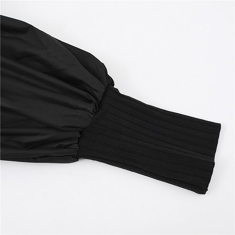 トップス カットソー ニットソー ショート ショート丈 半端丈 クロップド 長袖 ボリューム袖 パフスリーブ ラウンドネック スリム タイト 細身 切り替えデザイン リブニット 異素材MIX かわいい 大人可愛い きれいめ 大人 上品 おしゃれ お洒落 レトロ 大人女子 こなれ感 キュート ガーリー 個性的 モード系 エレガント モダン 主役級 存在感 S M L XL 黒 ブラック 大人カラー モノトーン 無地 秋 レディース OL 通勤 デート お出かけ パーティー イベント 韓国系 インスタ映え