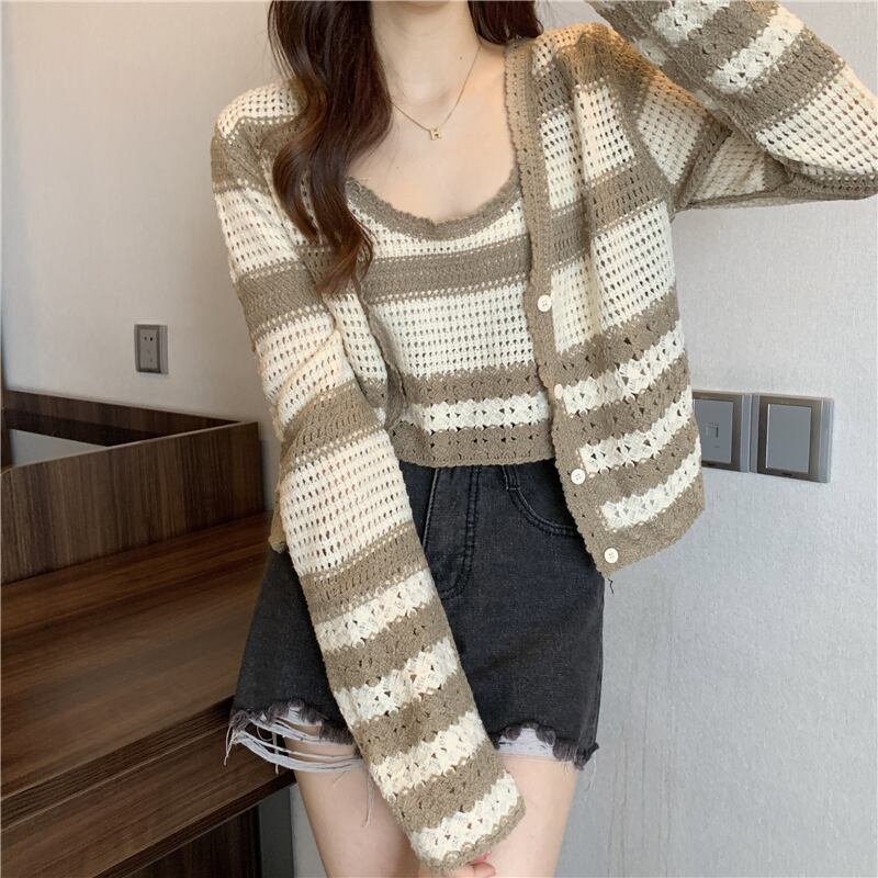トップス アンサンブル ニットソー セーター カーディガン キャミソール ミニ丈 ショート丈 袖なし 袖あり ノースリーブ 長袖 ニット 2点セット ツーピース かわいい 大人可愛い きれいめ シンプル カジュアル 大人 上品 おしゃれ お洒落 大人女子 こなれ感 抜け感 ナチュラル ランダム ボーダー ストライプ 春 夏 10代 20代 30代 40代 50代 60代 レディース 女性用 ママ OL 通勤 学生 通学 デート お出かけ 女子会 旅行 着回し サイズ S M L 黒 ブラック カーキ