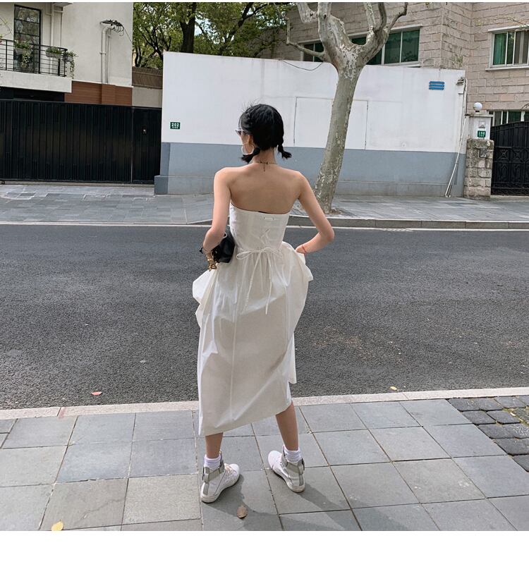 ワンピース チューブトップスカート ドレス スカート ハイウエスト シャーリング 白トップス ロング丈 袖なし セミフレア バックリボン スリット 綿 かわいい 大人可愛い きれいめ シンプル 大人 上品 おしゃれ お洒落 大人女子 こなれ感 キュート ガーリー ルーズ 個性的 クール セクシー 存在感 無地 夏 成人式 20代 30代 レディース 女性用 デート お出かけ パーティー リゾート 旅行 海 プール 高原 ガーデン ファッション コーデ スタイル トレンド XS S M L 白 ホワイト