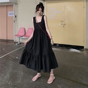 スカート ワンピース ロングスカート ミモレ ミモレ丈 袖なし ノースリーブ スクエアネック フレア セミフレア Aライン かわいい 大人可愛い きれいめ シンプル カジュアル 大人 上品 おしゃれ お洒落 レトロ 大人可愛い 大人女子 こなれ感 ラフ ガーリー ルーズ 主役級 存在感 フェミニン 夏 10代 20代 30代 レディース 女性用 デート お出かけ 女子会 休日 パーティー イベント リゾート 旅行 海 ホテル 角襟 ファッション コーデ 体型カバー フリーサイズ 黒 ブラック グリーン 緑