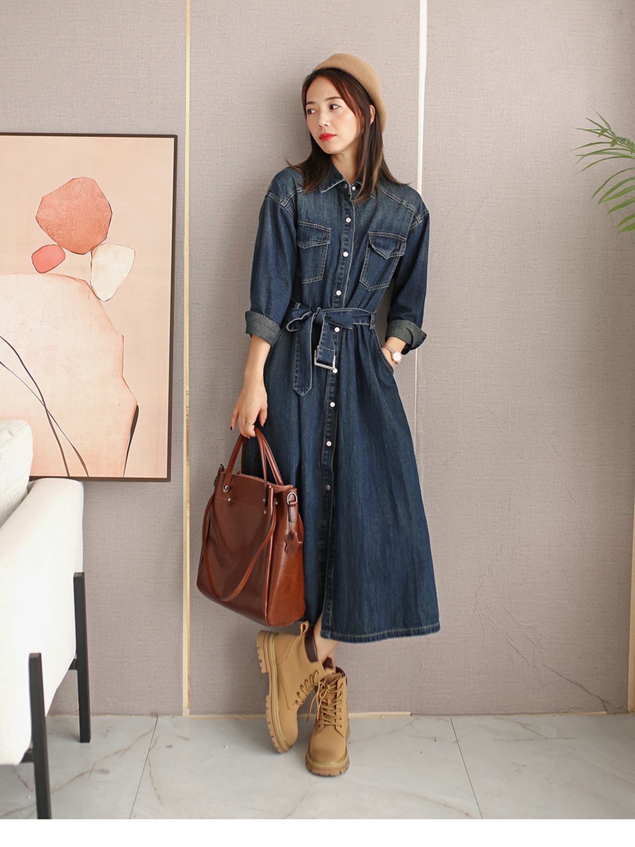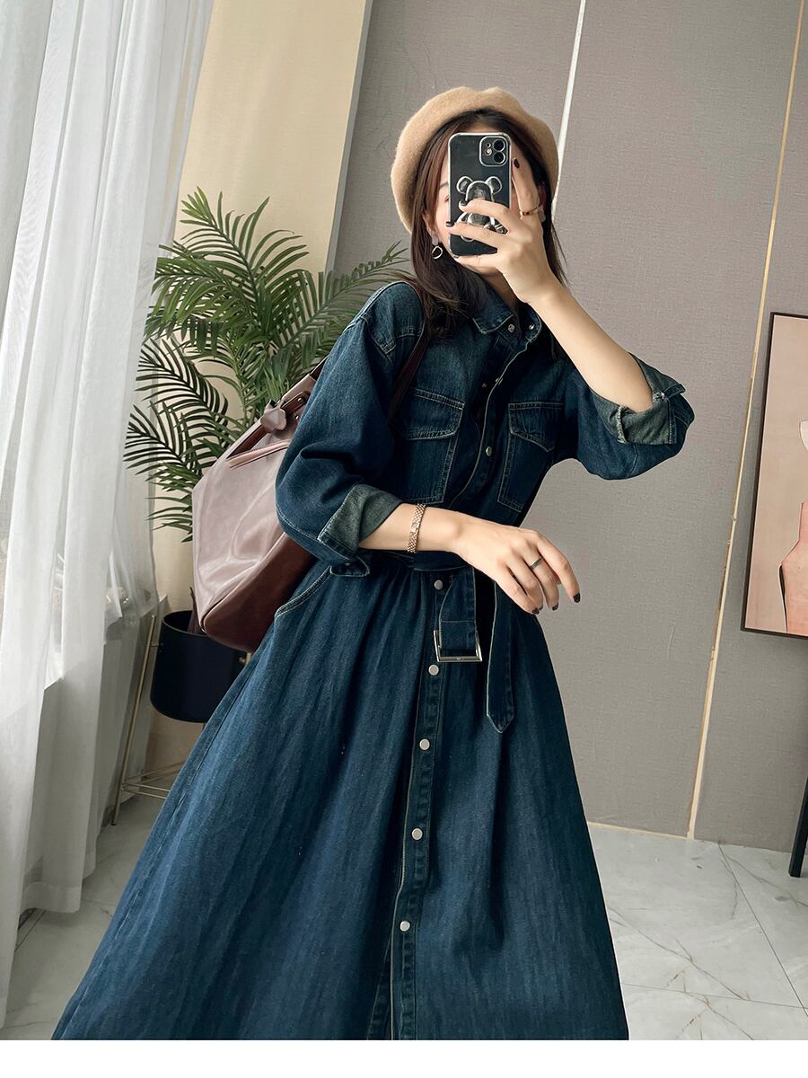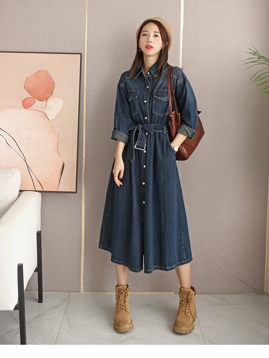 スカート ワンピース シャツワンピース デニムワンピース 膝下 ミモレ ミモレ丈 袖あり 長袖 襟付き Aライン 綿 かわいい 大人可愛い シンプル カジュアル おしゃれ お洒落 レトロ こなれ感 ラフ メンズライク スポーティー ラブリー キュート ガーリー ルーズ 主役級 存在感 大人カジュアル 無地 春 夏 秋 10代 20代 レディース 女性用 学生 通学 デート お出かけ 女子会 休日 アウトドア イベント 旅行 普段使い 韓国 ファッション 体型カバー M L XL プラスサイズ 青 ブルー