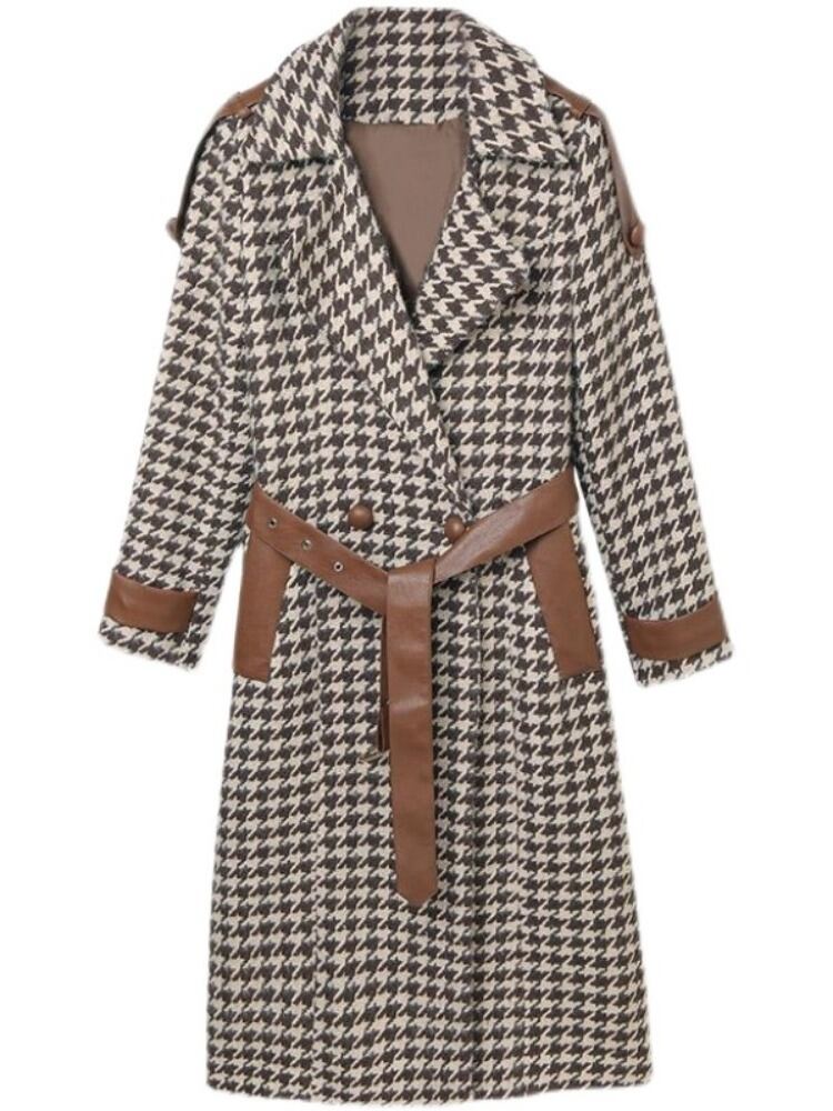 エレガントなシルエットが美しい、千鳥格子柄のロングコートです。