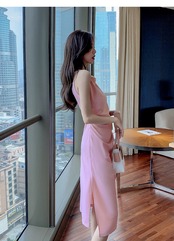 ドレープ ワンピース ワンピドレス 膝丈 ひざ丈 ノースリーブ ボートネック スリム タイト 細身 スリット サイドスリット ファスナー 大人可愛い きれいめ シンプル 大人 上品 おしゃれ お洒落 大人女子 こなれ感 モード系 セクシー エレガント モダン フォーマル S M L XL 白 ホワイト 青 ブルー ピンク パステルカラー 大人カラー 無地 春 夏 二次会 披露宴 レディース OL 通勤 デート お出かけ パーティー イベント 韓国 韓国系 オルチャン スタイル モテ 美脚 脚長 定番