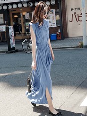 ワンピース ワンピドレス ロング ロング丈 ノースリーブ ラウンドネック スタンドカラー ストレート プリーツ リボン ウエストリボン ボタン かわいい 大人可愛い きれいめ シンプル カジュアル 大人 上品 おしゃれ お洒落 大人女子 こなれ感 ラフ モード系 エレガント モダン 抜け感 S M L XL ゆったり ゆる 青 ブルー パステルカラー 大人カラー 無地 春 夏 レディース ママ デート お出かけ 休日 リゾート 旅行 着回し 普段使い オルチャン 楽ちん モテ 体型カバー インスタ映え