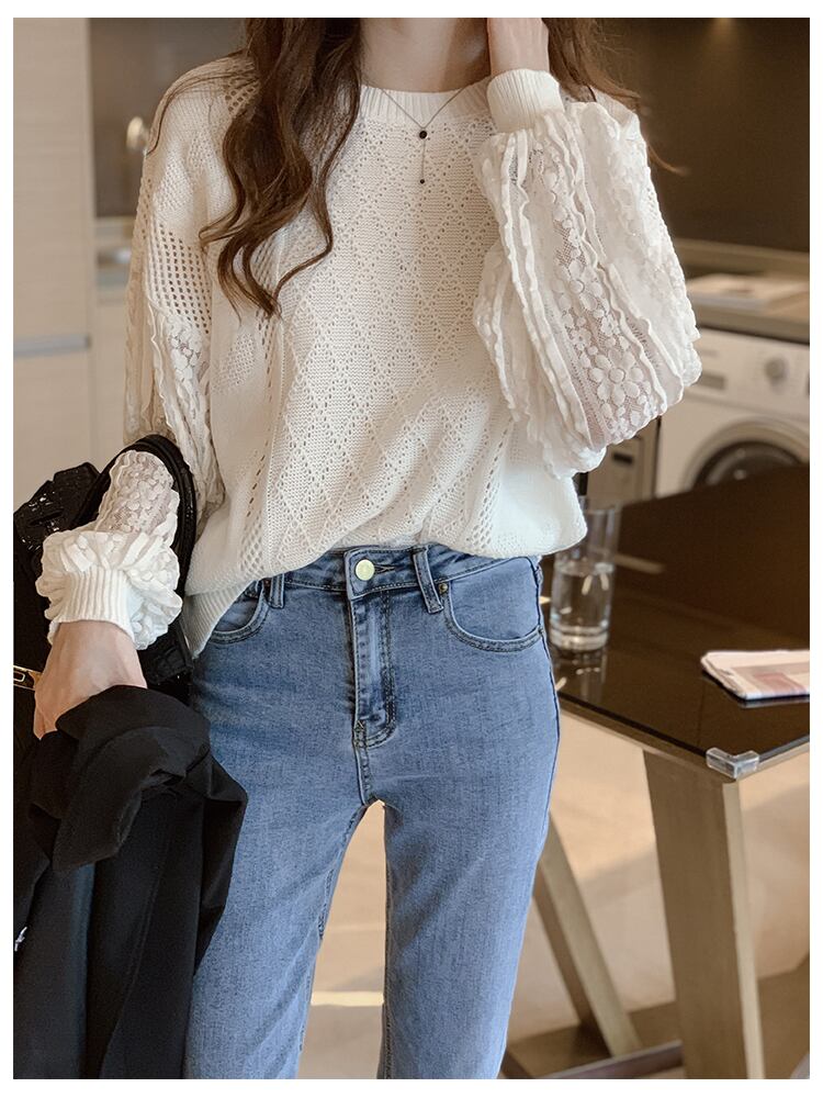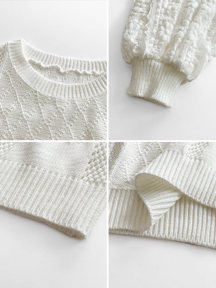 アイレットやはしごレース等、色々なレースの組み合わせがオシャレなニットです。