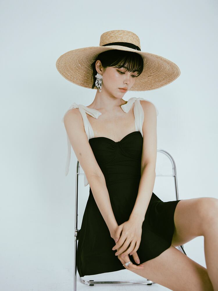 ブラック地にホワイトの肩リボンが大人可愛いデザイン