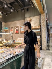 着ごこちがラクチンなつなぎタイプのオールインワンです。ラフなスタイルを楽しみつつ、ベルトを結べばガーリーモードに早変わり。