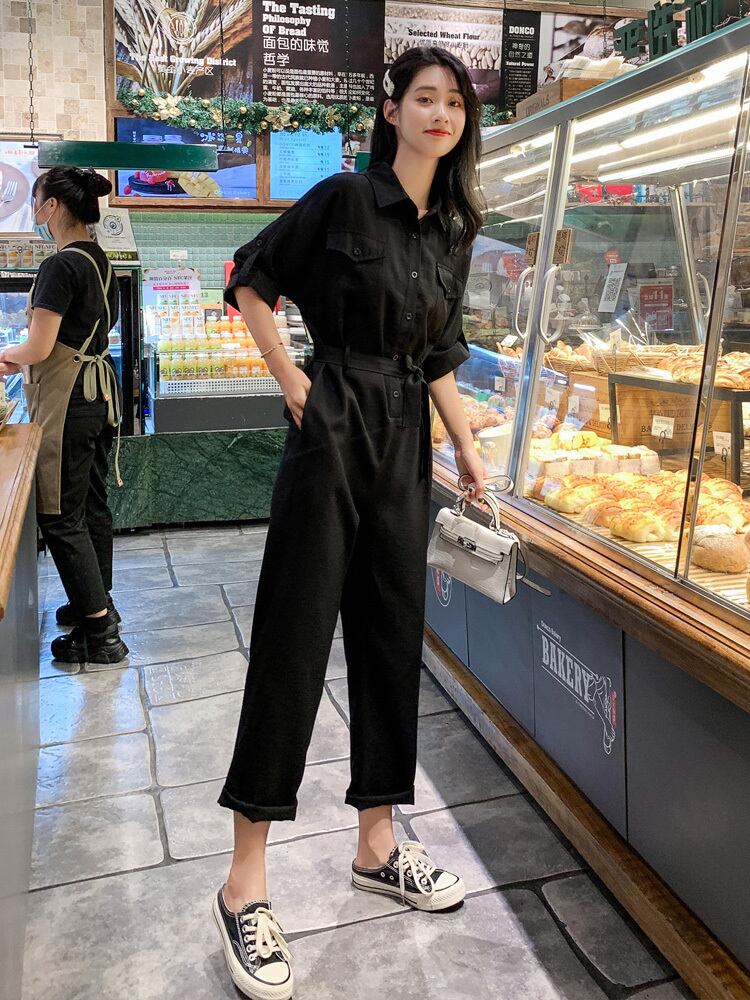 オールインワン ベルト 9分丈 袖あり 半袖 7分袖 七分袖 襟付き ワイド ベルト ウエストマーク ハイウエスト かわいい 大人可愛い きれいめ シンプル カジュアル 大人 上品 おしゃれ お洒落 大人女子 こなれ感 ラフ ボーイッシュ 存在感 無地 夏 10代 20代 レディース 女性用 オフィス OL 通勤 お出かけ 公園デビュー 女子会 休日 運動 アウトドア 旅行 高原 着回し 普段使い 重ね着 ファッション コーデ スタイル 楽ちん モテ 体系カバー トレンド XS S M L 黒 カーキ