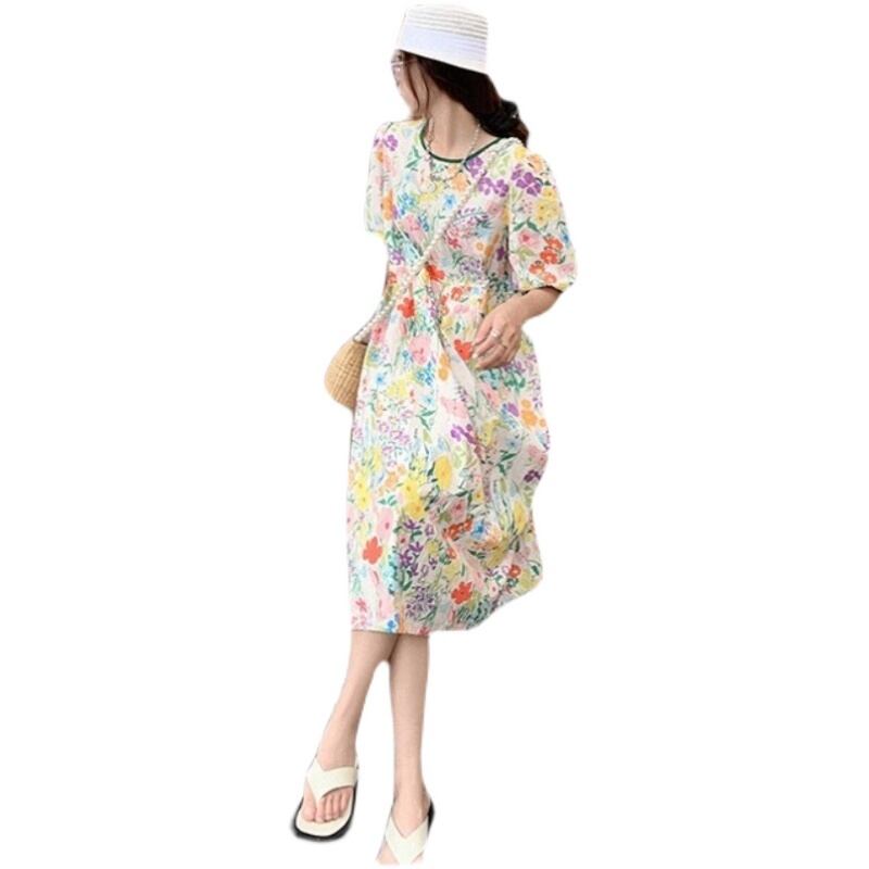ワンピース ワンピドレス 膝下 ミモレ丈 5分袖 ラウンドネック セミフレア かわいい 大人可愛い きれいめ 大人 上品 おしゃれ レトロ 大人女子 ラブリー キュート ガーリー エレガント 主役級 存在感 フォーマル 柄 花柄 小花柄 フラワー 春 夏 誕生日 二次会 母の日 バレンタイン 10代 20代 30代 40代 50代 60代 レディース ママ オフィス OL 学生 デート お出かけ 女子会 休日 リゾート 旅行 海 ホテル レストラン モテ M L XL 2XL 3XL 4XL ホワイト