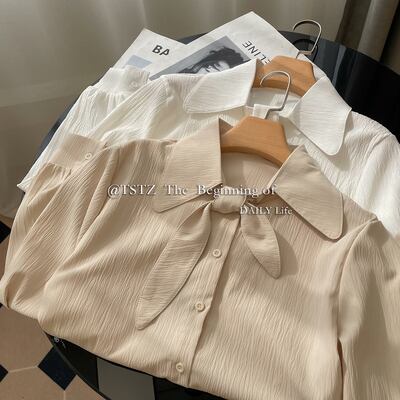 トップス シャツ ブラウス 白シャツ トップス レギュラー丈 袖あり 長袖 襟付き 細身 ストレート シフォン リボン かわいい 上下セット きれいめ シンプル 大人 上品 おしゃれ お洒落 こなれ感 ラブリー キュート ガーリー 無地 春 秋 10代 20代 30代 レディース 女性用 オフィス ビジネス OL 通勤 学生 通学 デート お出かけ 着回し 韓国系 モテ トレンド サイズ フリーサイズ ジャスト ワンサイズ 色展開 白 緑 グリーン カーキ 大人カラー アプリコット 春カラー 秋カラー