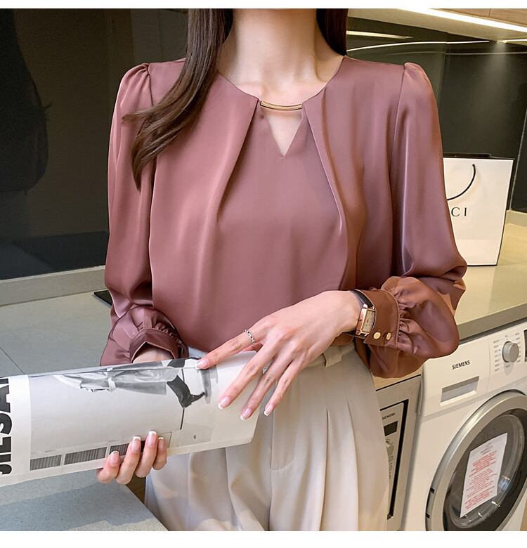 トップス シャツ ブラウス 白シャツ トップス レギュラー丈 袖あり 長袖 Vネック 襟なし 細身 ストレート シフォン リボン 上下セット かわいい 大人可愛い きれいめ シンプル 大人 上品 おしゃれ お洒落 こなれ感 ラブリー キュート ガーリー 無地 春 秋 10代 20代 30代 レディース 女性用 オフィス ビジネス OL 通勤 学生 通学 デート お出かけ 着回し 韓国系 モテ トレンド サイズ S M L XL 2XL ジャスト 色展開 白 赤 レッド ブリックレッド 春カラー