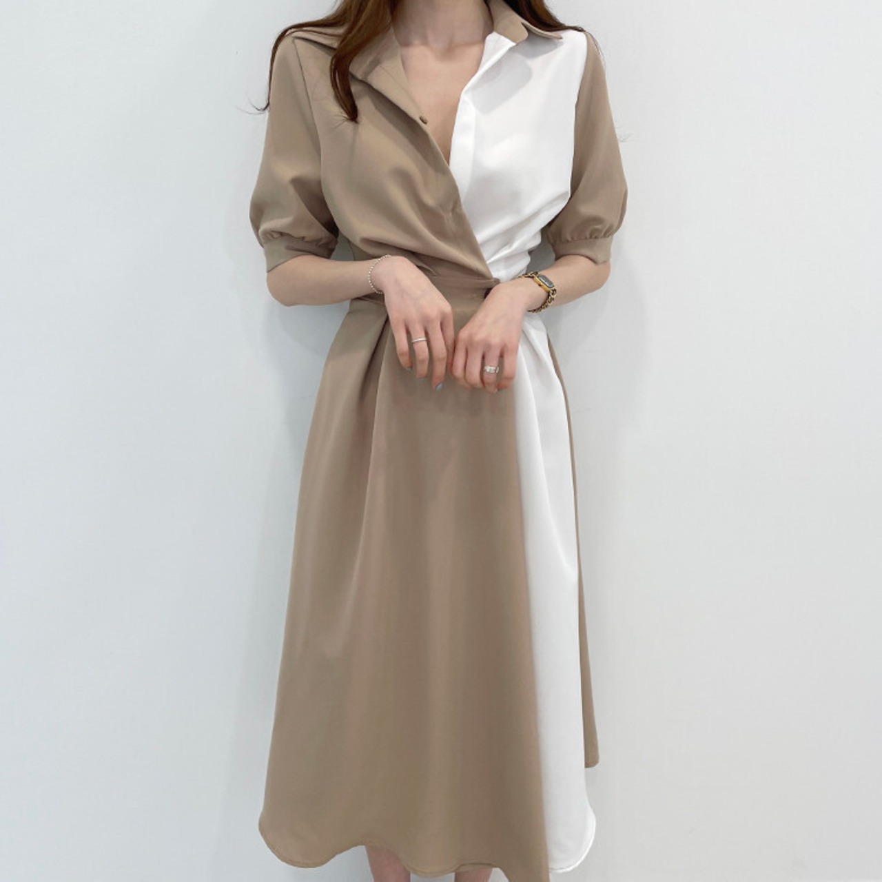 スカート ワンピース シャツワンピ フレアスカート シャツワンピース フレアワンピース 膝下 ミモレ ミモレ丈 袖あり 5分袖 パフスリーブ Vネック 襟付き フレア セミフレア きれいめ シンプル カジュアル 大人 上品 おしゃれ お洒落 大人可愛い 大人女子 こなれ感 エレガント 主役級 存在感 フェミニン シック 大人カジュアル 無地 春 夏 秋 10代 20代 オフィス ビジネス OL 通勤 学生 通学 デート お出かけ 女子会 休日 旅行 プール ホテル フリーサイズ ネイビー カーキ ホワイト