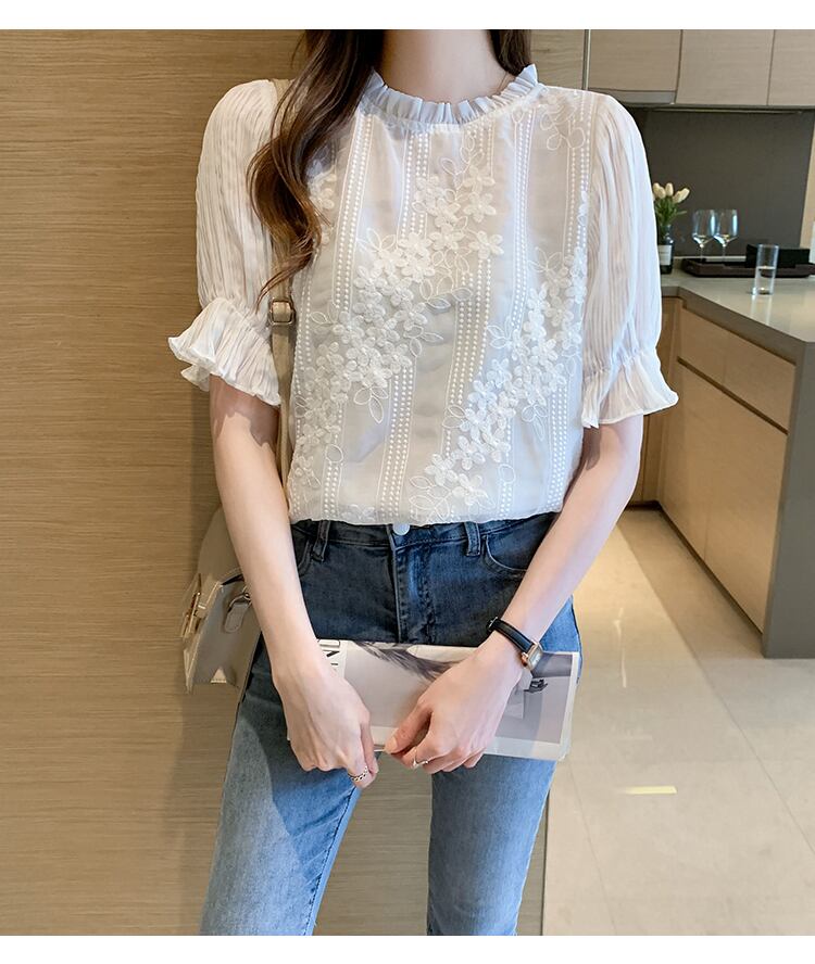 トップス プルオーバー 白シャツ 白トップス ショート ショート丈 袖あり 半袖 ラウンドネック ストレート レース フリル かわいい 大人可愛い きれいめ カジュアル おしゃれ お洒落 大人可愛い こなれ感 ラブリー キュート ガーリー 主役級 存在感 フェミニン 大人カジュアル 花柄 春 夏 秋 ビジネス OL 通勤 学生 通学 デート お出かけ 女子会 休日 リゾート 旅行 海 ホテル ガーデン レストラン 着回し 普段使い 重ね着 ファッション コーデ 服 S M L プラスサイズ 白 ホワイト