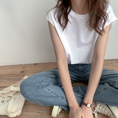 シンプルながらもこなれた印象のノースリーブカットソーです。