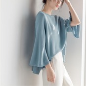 トップス ブラウス プルオーバー 袖あり 長袖 フレアスリーブ クルーネック 襟なし フレア デザイン 美ライン ニュアンス ドレープ カラバリ かわいい 大人可愛い きれいめ シンプル カジュアル 大人 上品 おしゃれ お洒落 大人可愛い 大人女子 こなれ感 ラブリー キュート ガーリー 個性的 エレガント モダン 主役級 存在感 抜け感 ベーシック ヨーロッパカジュアル ブリティッシュ スタンダード 洗練 無地 エイジレス レディース お出かけ 旅行 着回し 普段使い 重ね着 お揃い 双子