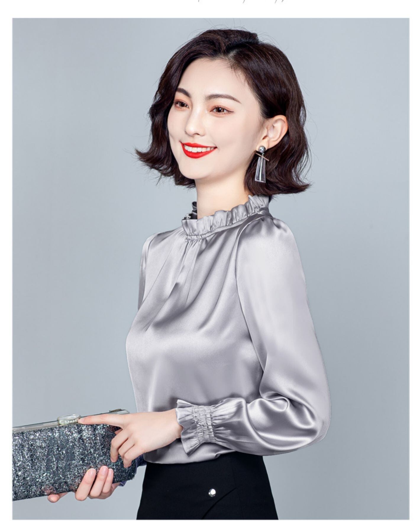 トップス ブラウス ショート ショート丈 長袖 ハイネック スリム ストレート シャーリング フリル かわいい 大人可愛い きれいめ シンプル 大人 上品 おしゃれ お洒落 レトロ 大人女子 こなれ感 個性的 モード系 エレガント モダン S M L XL 2XL 3XL 緑 グリーン 紫 パープル 灰色 グレー カラバリ クラレット モカ 無地 春 秋 レディース オフィス ビジネス OL 通勤 デート お出かけ パーティー イベント 韓国系 オルチャン ファッション インスタ映え